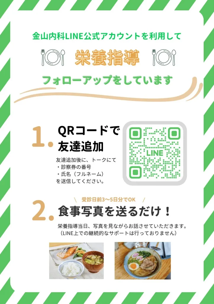 LINEでは日常的なやり取りや、メッセージでの継続的な食事アドバイスは行っておりません。あくまで「次回の栄養指導をより具体的にするための記録の提出」としてご利用ください。
