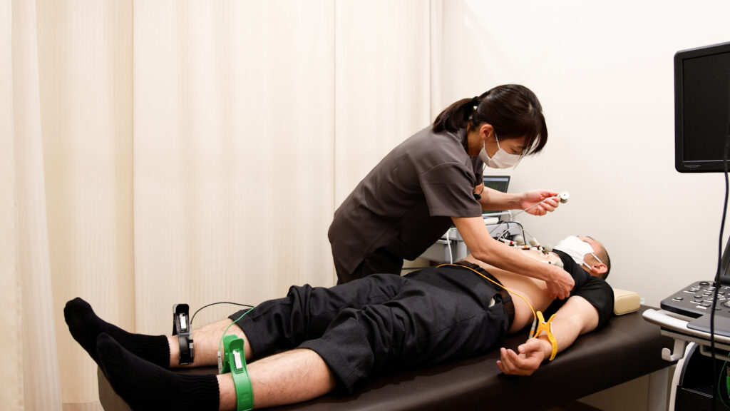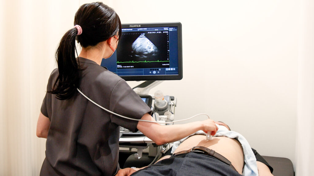 SASの原因となりやすい内臓脂肪型肥満や心機能の問題に対して、必要に応じて腹部・心臓のエコー検査を実施。